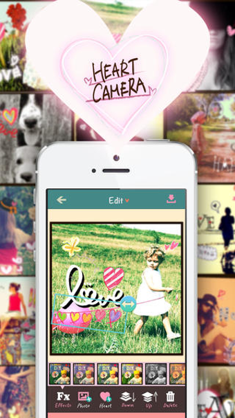 My Heart Cameraは、キュートなハートを好きなだけ写真にちりばめられる画像加工アプリです。
