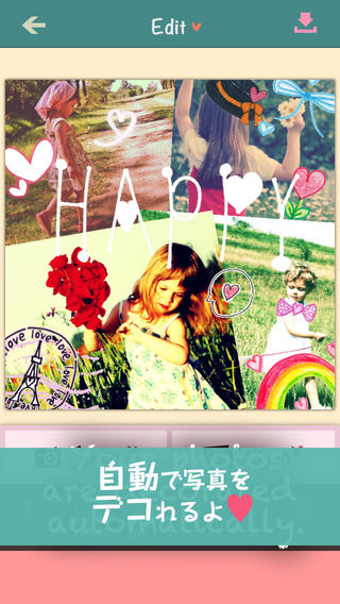 My Heart Cameraは、ハート形のスタンプでデコれる機能以外に、写真にフィルターをかけたり、複数の写真を使ったコラージュ画像を作成したりもできます。また、デコりたい写真を選んでiPhoneを胸に3秒間あててみると、ハートなどのスタンプがいつの間にか現れます☆さくらんぼなど、予想外のスタンプと巡り合うのも楽しいもの。さらに、好きなだけハートスタンプでデコった画像を保存すると、その瞬間にもハートが散るのも、ちょこっとカワイイ仕掛けです。
